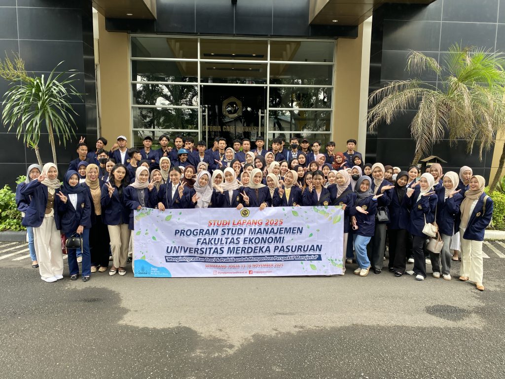 Fakultas Ekonomi Universitas Merdeka Pasuruan kembali melaksanakan program tahunan Studi Lapang untuk Tahun Akademik 2025/2026. Kegiatan ini berlangsung selama lima hari, mulai Kamis hingga Senin, 13–17 November 2025, dengan melibatkan 9 dosen dan staf Fakultas Ekonomi serta 84 mahasiswa Program Studi Manajemen semester 3.